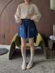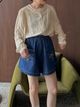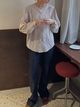*瑕疵*日牌感直紋圓領襯衫(附綁帶)